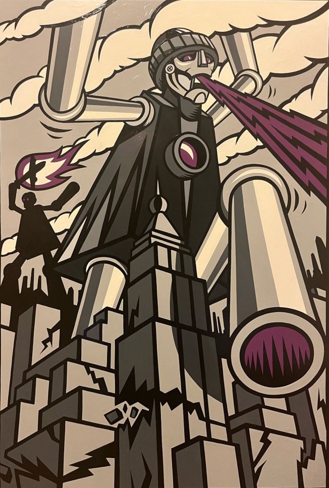 Grundy affonda le sue radici nella cultura delle hot rod californiane, nei fumetti pulp degli anni ’40 e nella propaganda della Guerra Fredda. La sua arte, influenzata da Saul Bass e dallo stile WPA, trasforma la paranoia americana in una forma estetica quasi religiosa, dove il culto del motore e della libertà si scontra con la sorveglianza totale e il controllo tecnologico. Ossessionato dal tema del “controllo vs libertà”, Grundy non si limita a decorare il mondo custom: lo narra, lo celebra, lo protegge. La sua arte è diventata manifesto per biker, outsider e creativi underground, un incrocio tra posterismo militante e culto della macchina. Ogni sua opera è una dichiarazione di indipendenza visiva, rumorosa e perfettamente cromata.