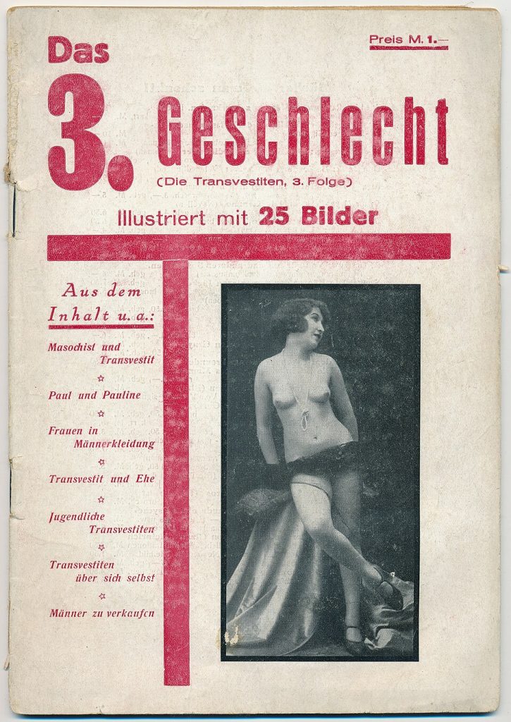 Tra le pubblicazioni colpite c’è una rivista dal titolo pericolosamente chiaro: Das 3. Geschlecht ovvero Il terzo sesso. Quell’irruzione segna di fatto la fine di una delle esperienze editoriali più radicali e tipicamente underground della Berlino libertina, e allo stesso tempo ne certifica l’importanza storica.