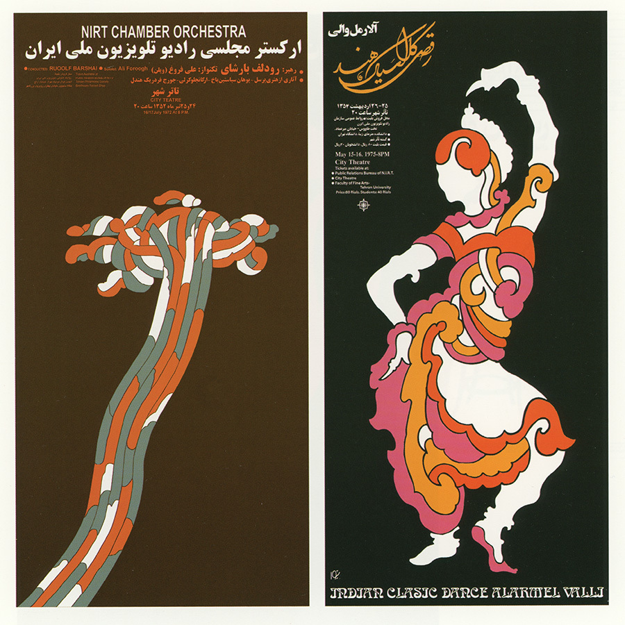 Questa rivoluzione sonora trovò il suo specchio visivo in una grafica acida e profondamente innovativa, capace di tradurre le vibrazioni del sitar elettrico in forme geometriche e colori ipnotici. Il pioniere di questo linguaggio fu indubbiamente Morteza Momayez, il “padre del graphic design iraniano”, che insieme a figure come Farshid Mesghali e Ghobad Shiva, mescolò l’estetica della cartellonistica polacca e il surrealismo europeo con la calligrafia persiana e certa psichedelia californiana. Le loro opere non erano semplici poster, ma visioni lisergiche: i caratteri dell’alfabeto farsi venivano deformati, allungati e fatti “sciogliere” proprio come nei manifesti di San Francisco, creando un ponte visivo tra l’eredità millenaria di Isfahan e l’estetica dei light-show di Londra. Era un design che rifiutava la pulizia del modernismo aziendale per abbracciare un’illustrazione sporca, materica e onirica. Questa facciata di benessere e consumismo sfrenato incarnava perfettamente ciò che Guy Debord definiva la Società dello Spettacolo: un’immagine di modernità prefabbricata dove le relazioni autentiche tra cittadini venivano sostituite da una sfilata di merci e simboli occidentali, spingendo gli artisti underground a cercare un “autentico” persiano che non fosse né merce, né folklore museale.