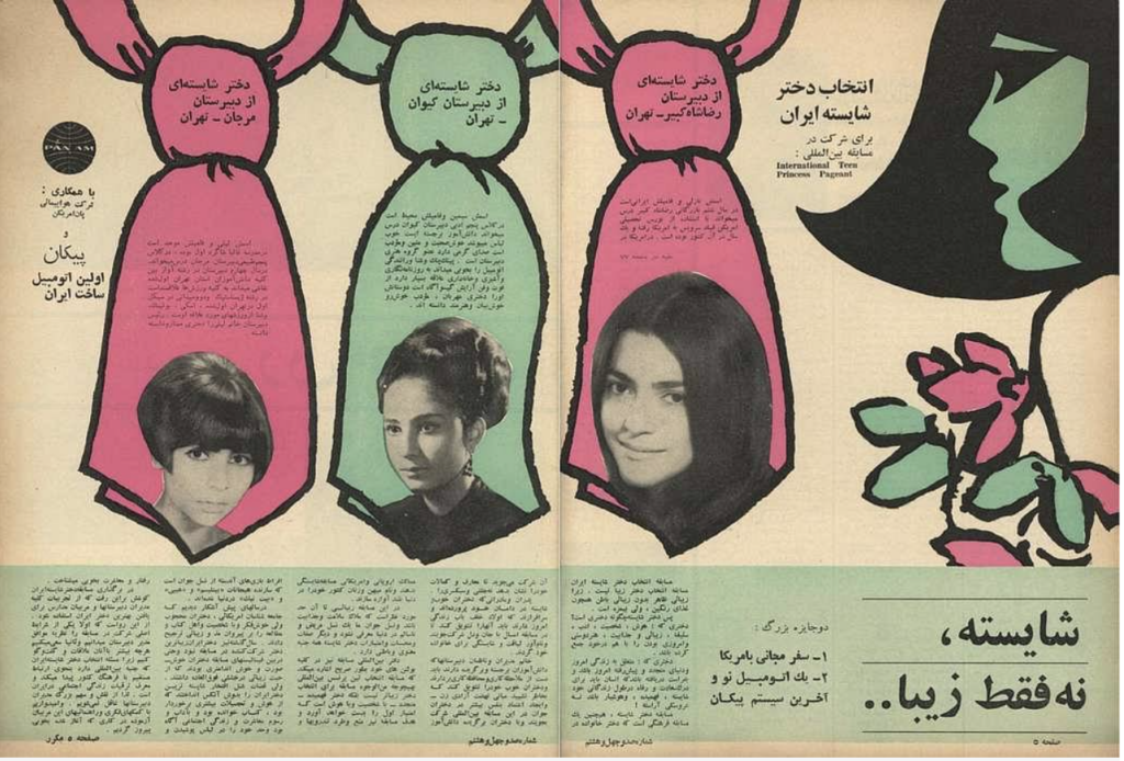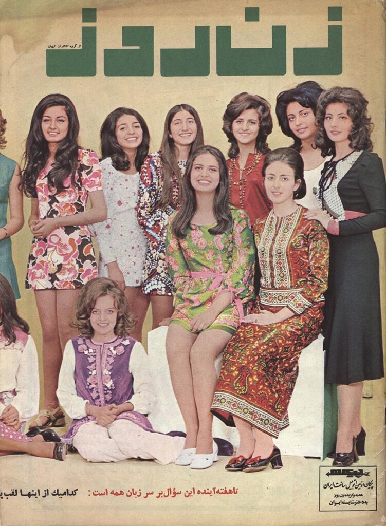 Le copertine di queste riviste, spesso caratterizzate da contrasti cromatici violenti e tecniche miste di collage e fotomontaggio, erano oggetti di culto: piccoli manifesti anticonformisti che circolavano nelle università, portando l’avanguardia visiva nelle mani di chiunque cercasse una crepa nel sistema. Quella cultura underground era una bolla di creatività estrema, un’esplosione di vita che cercava di esistere nonostante la repressione politica. Era un Iran notturno, sofisticato e profondamente libero, che viveva ogni notte come se fosse l’ultima, consapevole della fragilità di quell’equilibrio perfetto tra Oriente e Occidente.